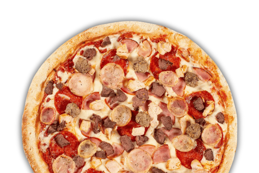Міт Болл • шинка • яловичина (фарш) • італійські ковбаски • курка гриль • моцарелла • салямі Пеппероні • томатний соус (основа)