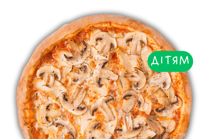 курка гриль • моцарела • томатний соус (основа) • печериці